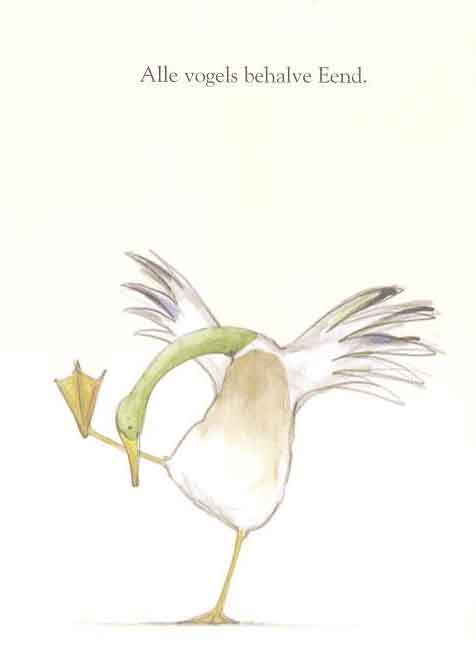 Alle vogels hebben een ei gelegd, met uitzondering van een(d). Gelukkig valt er een groot wonder uit de lucht. Met stip het mooiste ei dat hij ooit zag! Hij broedt het uit, met veel warmte en liefde. Tot het beestje uit zijn schelp komt… Een happy end? In elk geval een happy eend. En een pluim voor het gedurfde einde!