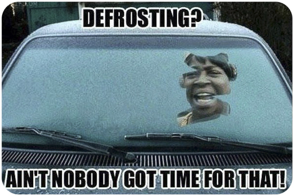 Een bevroren voorruit maar geen tijd
