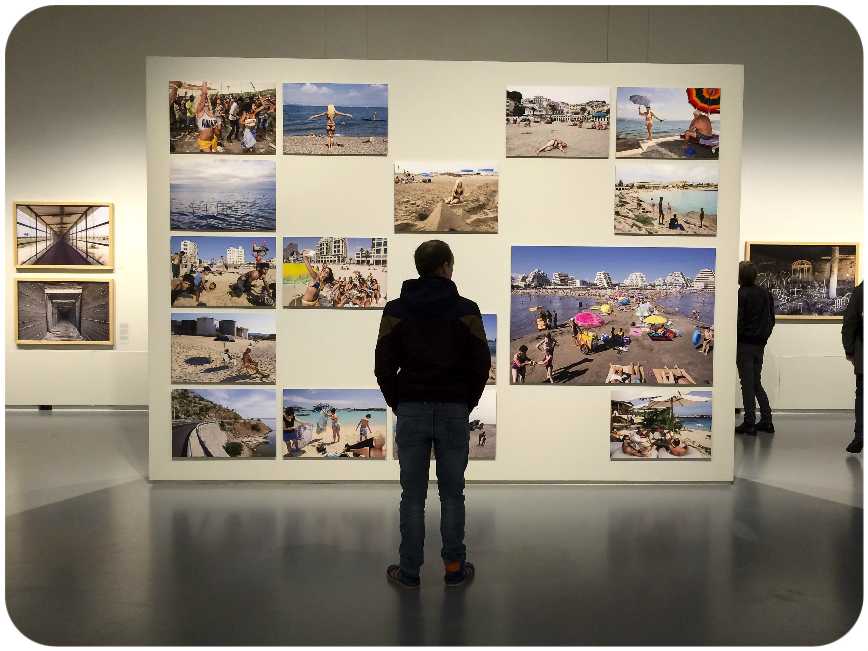 Voor wie het niet helemaal duidelijk is: we bezochten het FotoMuseum in Antwerpen. Leuk! Zowel de locatie als de selectie foto’s, het snuistershopje, het cinemazaaltje en het buitenaardig eetcafe ‘Ufo’. Bescheiden – al is het in Antwerpen *oeeee* – maar zeker de moeite waard! Na 2 of 3 uur slenteren ben je rond. Perfect voor mij. Dan heb ik het vaak gehad. Overdosis prikkels. Zoals een nieuw parfum kiezen: na drie geuren komt het niet meer binnen. Na drie tentoonstellingen kan ik het ook niet meer zien of smaken zoals het hoort. De beelden op de foto zijn trouwens van de Belgische fotograaf Nick Hannes, die zijn verhaal ‘Mediterranee’ ophing aan de kustlijn van de Middellandse Zee.