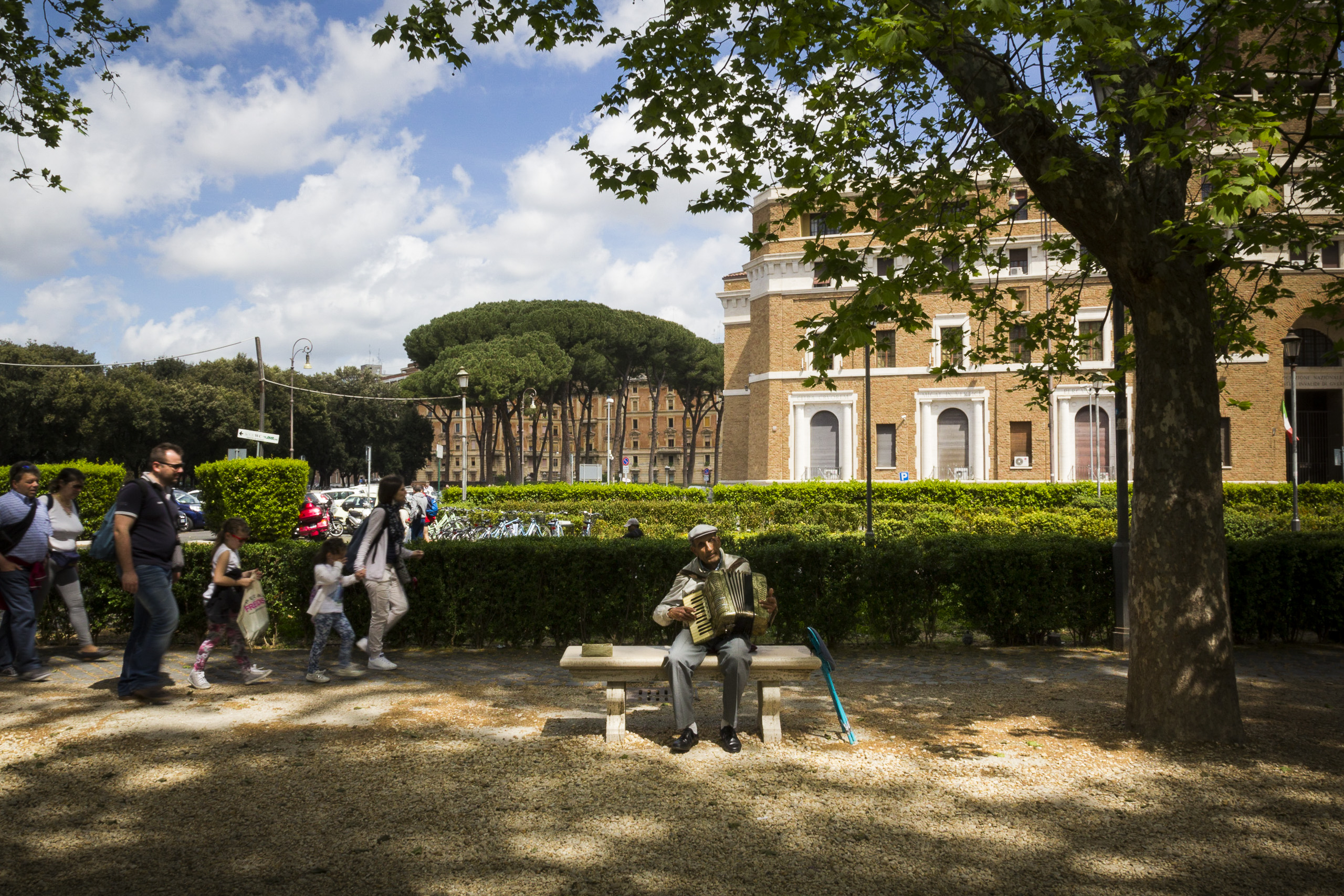 > Koop een zakje chips en een koel drankje in de winkel en zet je er lekker – gezellig – bij op straat. Of leg je even in een park: de tuinen van Villa Borghese bijvoorbeeld.