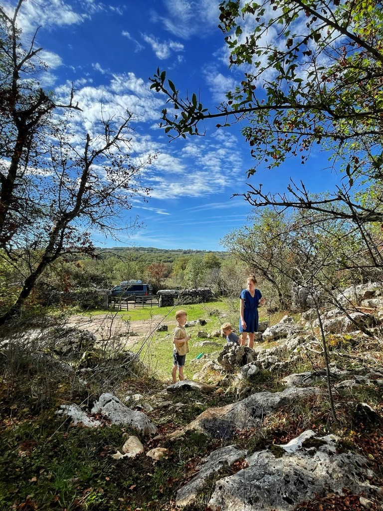 We picknickten tussen hagedissen, libellen en sprinkhanen. We bezochten grotten en bedevaartsoorden. Sven slenterde door de typisch Franse straatjes van Cahors met de kindjes, terwijl ik ‘thuis’ zat te werken – ik werk hier twee dagen in de week om onze reis financieel haalbaar te houden.