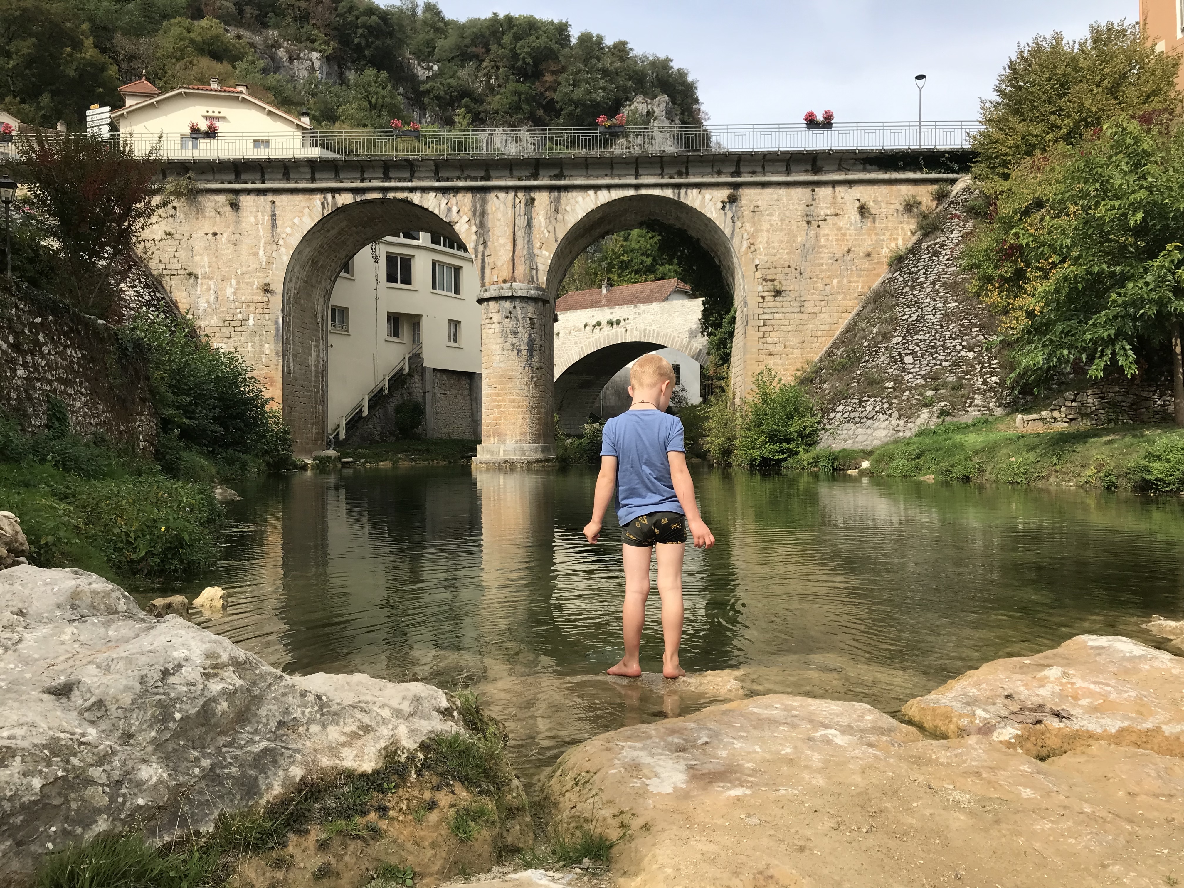 We kronkelden samen langs de Lot, en drijfden mee op de flow van deze rivier. We stopten aan kleine ‘plages’ om dammen te bouwen, steentjes te ketsen, blaadjes uit het water te filteren en visjes te vangen. We bewonderden watervalletjes en valleien vanop bruggen en bergen.