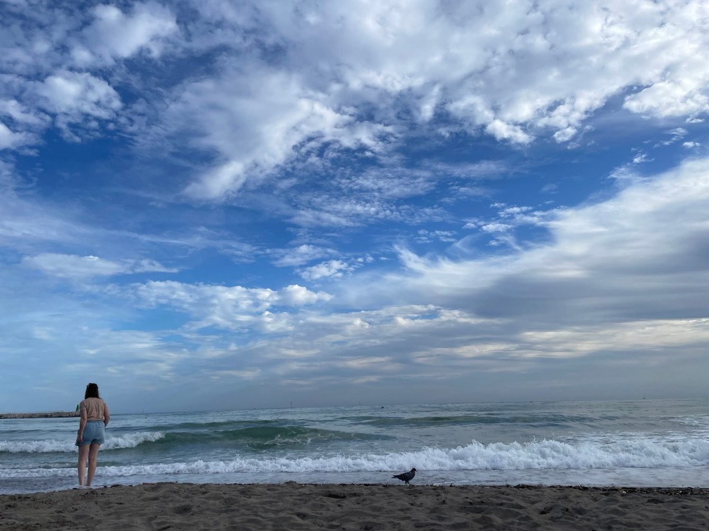 Zij en ik. Het voelt zo gemakkelijk. We doen elk ons ding, samen of in elkaars buurt. Geen schuldgevoel. Geen pleasegedrag. Geen maskers. Ik doe een dutje in bed, zij leest een boekje op ons terras. Zij zoekt schelpen in de branding, ik lees een boekje op het strand. Ik bestel de bustickets in het Spaans, zij gidst ons naar een leuke tapasbar.